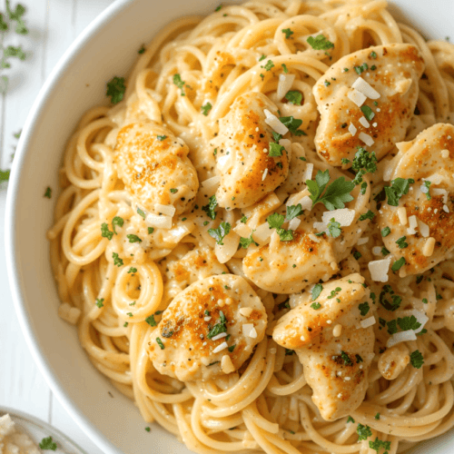 • Enjoy a creamy, flavorful dish with tender chicken and a rich parmesan sauce