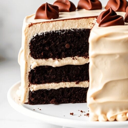 This chocolate cake with simple vanilla frosting is a favorite of mine. Its mix of flavors and textures is unbeatable. Once you try it, you’ll see why it’s the top choice for chocolate cake.