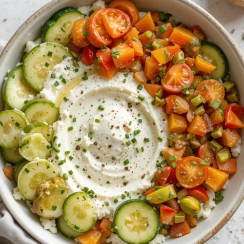 This isn’t your grandma’s cottage cheese, drenched in canned peaches (no offense, Grandma). This version is creamy, savory, packed with protein, and bursting with fresh veggies and crunchy toppings. Think of it as a breakfast salad but way more fun to eat. And the best part? No cooking required. Just chop, mix, and devour.
