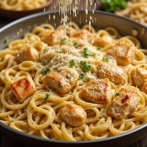 A rich and creamy garlic Parmesan sauce with tender chicken and penne pasta, ready in 30 minutes. Perfect for busy weeknights and a family favorite.