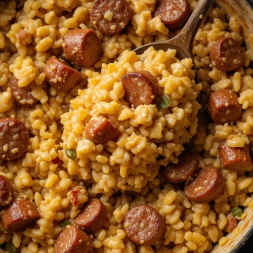 So there you have it. A cozy, cheesy, one-pot Delicious Sausage And Rice Recipe that’s big on flavor and even bigger on convenience. Whether you’re serving it fresh or reheating from the freezer, it’s a guaranteed win at the dinner table.