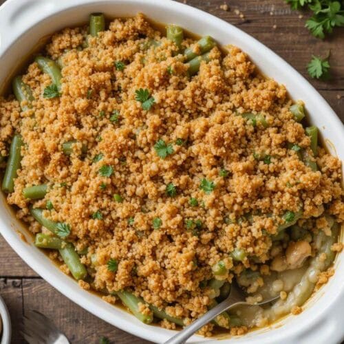 For those who can’t eat gluten, try using crushed gluten-free crackers or breadcrumbs instead of the usual onion topping. This keeps the dish crunchy and delicious, making sure it’s just as tasty as the original.