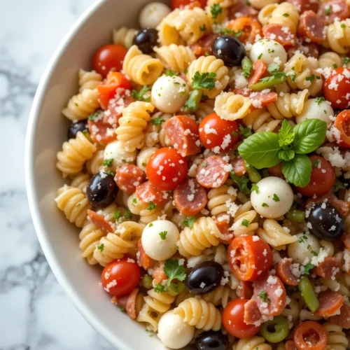 Let’s talk flavor bombs. This pasta salad with Italian dressing is not just another side dish—it’s the dish that disappears first at every potluck I bring it to. Why? Because we’re talking bold, bright ingredients like Genoa salami, mozzarella pearls, pepperoncini, and my secret weapon—homemade Italian dressing.