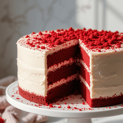 The vibrant red hue, the silky texture, the heavenly aroma of cream cheese frosting—this cake doesn’t just taste amazing; it’s a feast for the eyes and nose, too. It’s a showstopper for celebrations and a soul-soother for cozy nights in.