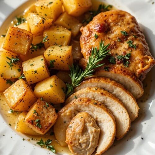 This dish is perfect for busy weeknights. It’s easy to make and fills your home with a delicious smell. The chicken and potatoes are tender and flavorful, making it a great choice for dinner.