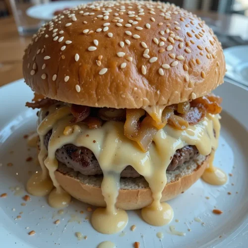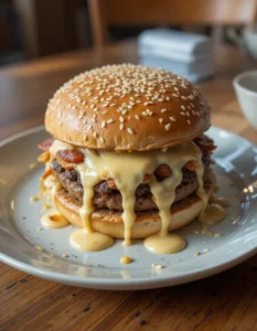 Spread a generous layer of Baconnaise Sauce on the bottom bun. Stack on your cheesy patties. Top with a bit more sauce (we’re not shy), then crown it with the top bun. Press it down gently and let the magic happen.