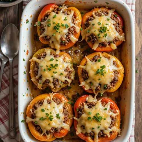 Let’s be honest—when you’re in need of something cozy, satisfying, and foolproof for dinner, stuffed bell peppers with ground beef check every single box. They’re warm, cheesy, and packed with savory meat and tender veggies, all wrapped up in a delicious edible bowl. Plus, they look way fancier than the effort it takes to make them. These classic stuffed peppers are that magic mix of comforting and wholesome, with a balance of lean protein, fresh bell peppers, and melt-in-your-mouth cheese. Whether you’re hosting a casual dinner or just feeding the family on a weeknight, they’re a guaranteed crowd-pleaser—and they work beautifully for meal prep, too. One bite in, and you’ll remember why this dish never goes out of style.
